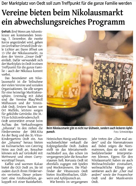 wir, die Gemeinde Grefrath und das Quartiersteam, möchten uns auf diesem Wege ganz herzlich bedanken! Danke für Ihre Unterstützung sowie für die tollen Programmpunkte und kreativen Stände. Danke für die musikalische Unterhaltung, die Öffnung von Gastronomie und Einzelhandel und besonders für die Zeit, die Sie für die Organisation und Umsetzung der Aktion investiert haben. Durch Ihr Engagement ist der Tag der Städtebauförderung für Groß und Klein zu einer lebendigen und gelungenen Veranstaltung geworden. Dieser Nachmittag hat eindrucksvoll gezeigt, wie lebhaft die neue Ortsmitte in Oedt „bespielt“ werden kann.